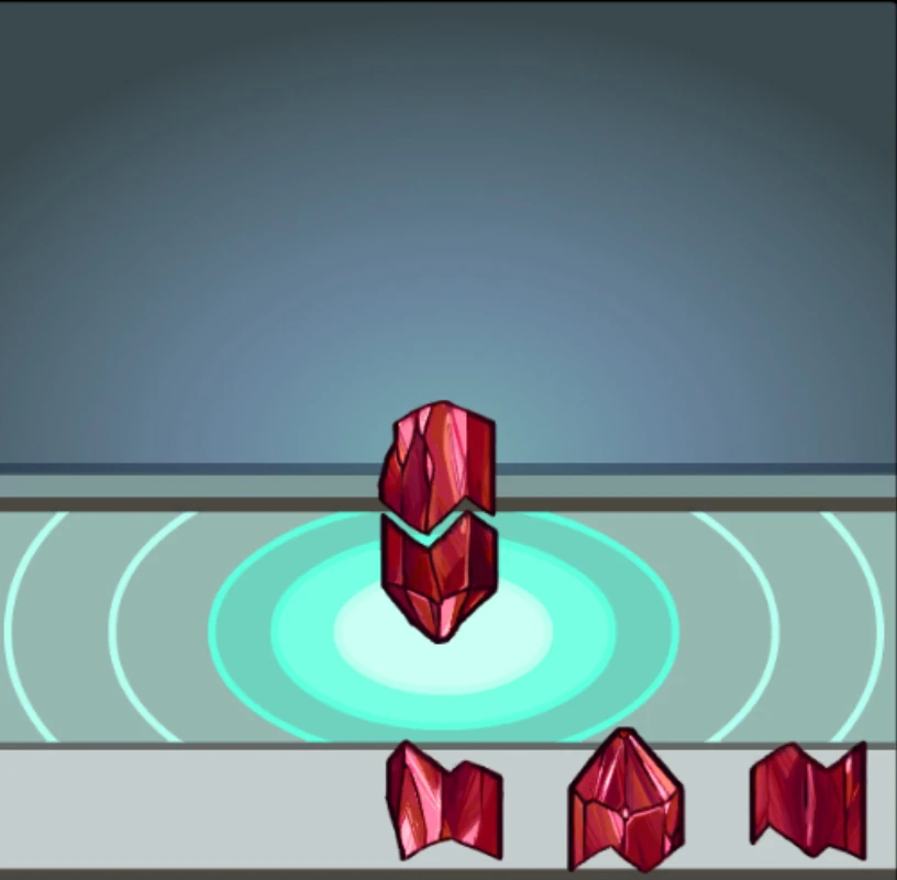 Это одноэтапное задание, располагающееся на столе в верхней части лаборатории. В мини-игре присутствует большое магнитное поле и пять осколков большого фиолетового (или красного) кристалла. Игроку нужно соединить эти части так, чтобы получился один большой артефакт: делать это нужно, опираясь на форму осколков.