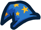 A Real Wiz is a blue nightcap decorated with yellow stars.