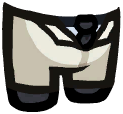 The Flashy consists of a white suit with a black tie underneath and black shoes.