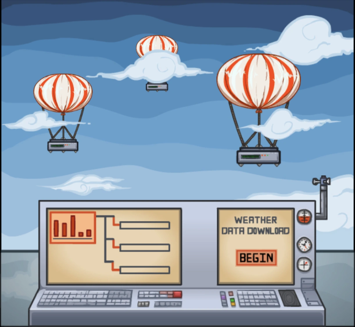 To start the task, the player must hit the "Begin" button. The task is complete when text on the Weather Data Download box says "done." Measure Weather takes six seconds to complete.