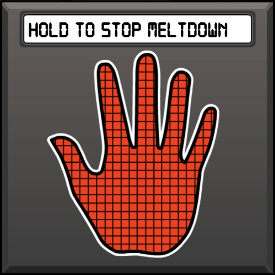 When the player opens the Reactor Meltdown interface, it says "HOLD TO STOP MELTDOWN", and the hand is colored red. When the player is tapping on the scanner and no one is tapping on the other, it will say "WAITING FOR SECOND USER", and the hand remains red. When two players hold on each scanner, it will say "REACTOR NOMINAL", and the hand turns blue.