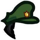 The Rupert consists of a green peaked cap with a golden badge on the front, and a black sideburn that extends from the bottom of the cap.
