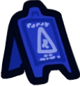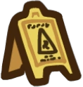 The Slippery When Wet is a yellow caution sign atop the player's head, with indistinct gray writing, as well as a gray triangle shape.
