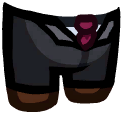 The Suited Up consists of a black blazer and pants with a white shirt and Tyrian purple tie underneath, and brown shoes.