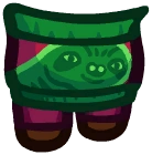 The Ugly Sloth Sweater is a large, red and green sweater that reaches up to the bottom of the player's visor. A distorted sloth face is printed on the front of the sweater. Underneath the sweater is a pair of red pants ending in brown shoes.
