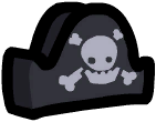The Walk the Plank is a black pirate hat with a light gray skull and crossbones symbol.